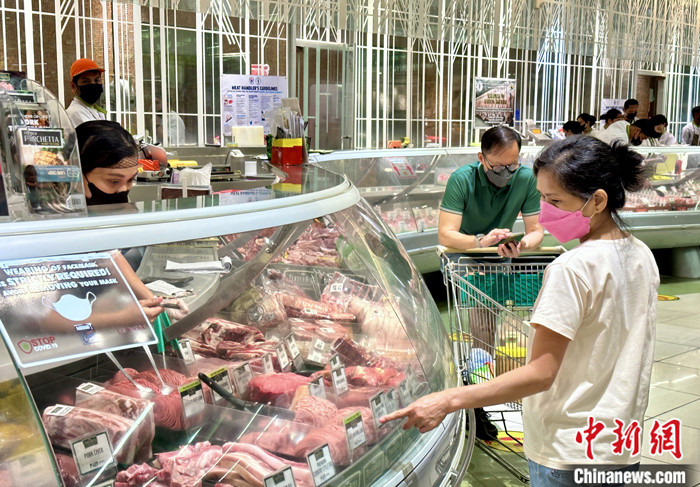 圖為(wei) 菲律賓大馬尼拉地區馬卡蒂市,市民在超市選購豬肉。 中新社記者 張興(xing) 龍 攝