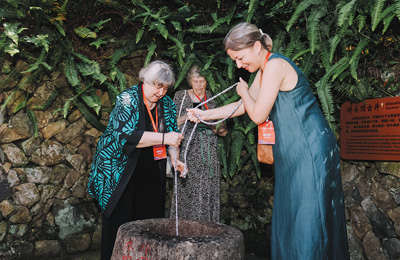 走過枝繁葉茂的千年柳杉,穿過青石鋪就的鼓嶺老街,在始建於(yu) 1914年的萬(wan) 國公益社,大家圍坐桌前共敘鼓嶺情緣,一幅穿越時光的友誼畫卷緩緩打開。