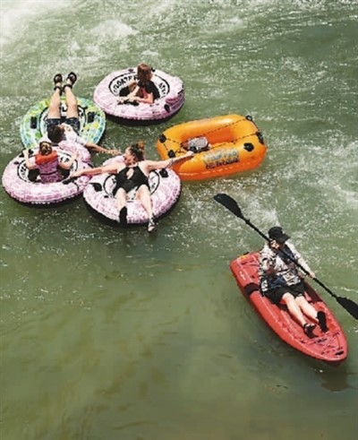 美國南部多地近日接連刷新高溫紀錄。圖為(wei) 近日,在美國得克薩斯州新布朗費爾斯,人們(men) 在河中消暑。