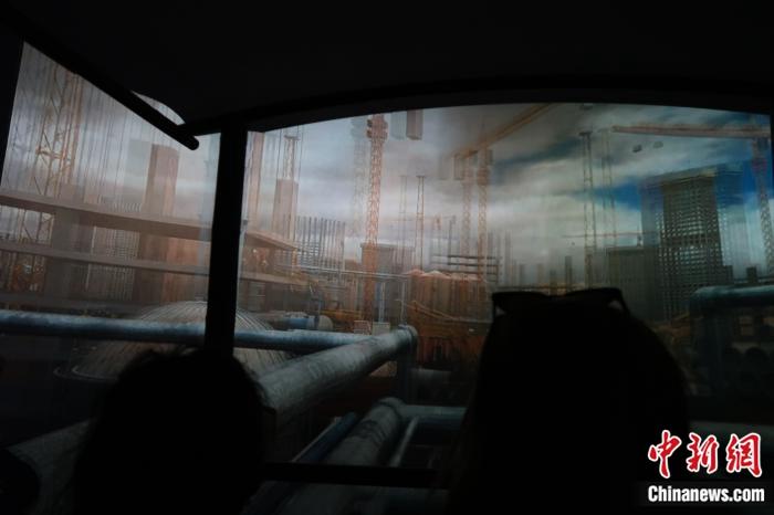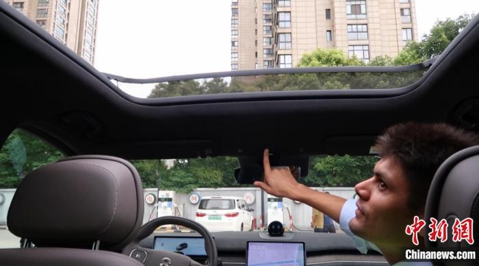 在華留學生上車體(ti) 驗新能源汽車站內(nei) “一鍵換電”。 唐煒妮 攝