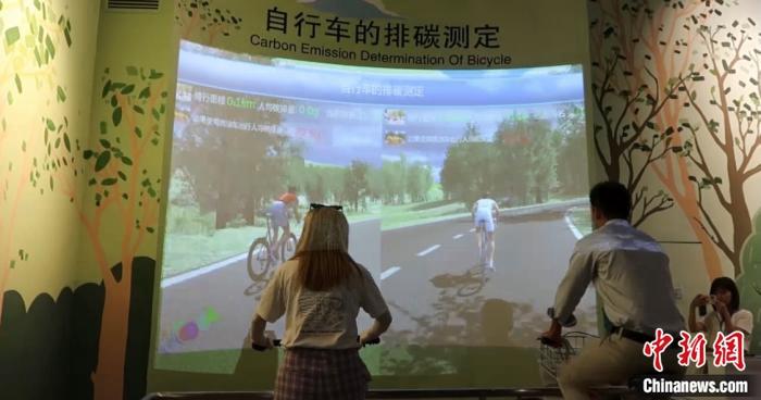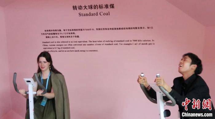 在華留學生體(ti) 驗“低碳城市”展廳互動產(chan) 品。 唐煒妮 攝