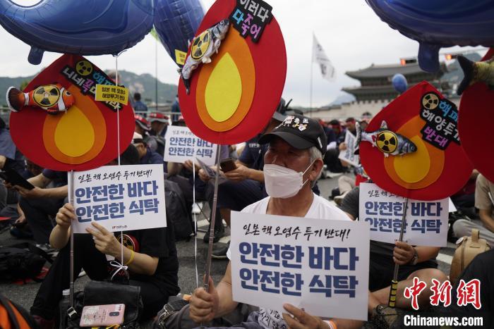 當地時間7月8日,韓國多個(ge) 市民團體(ti) 和在野黨(dang) 在首爾集會(hui) ,抗議日本強推核汙染水排海計劃。 中新社記者 劉旭 攝