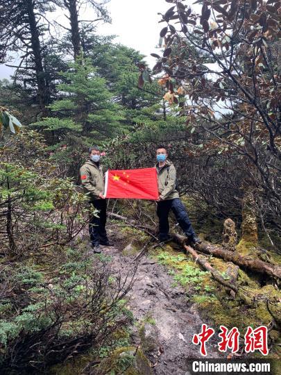 圖為(wei) 王彥凱(右)和戰友在一線山口宣誓主權。 拉郊邊境派出所供圖