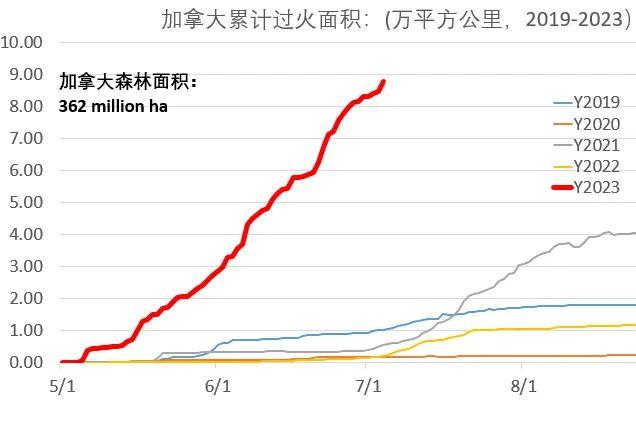 加拿大火燒麵積的累計圖。劉誌華供圖