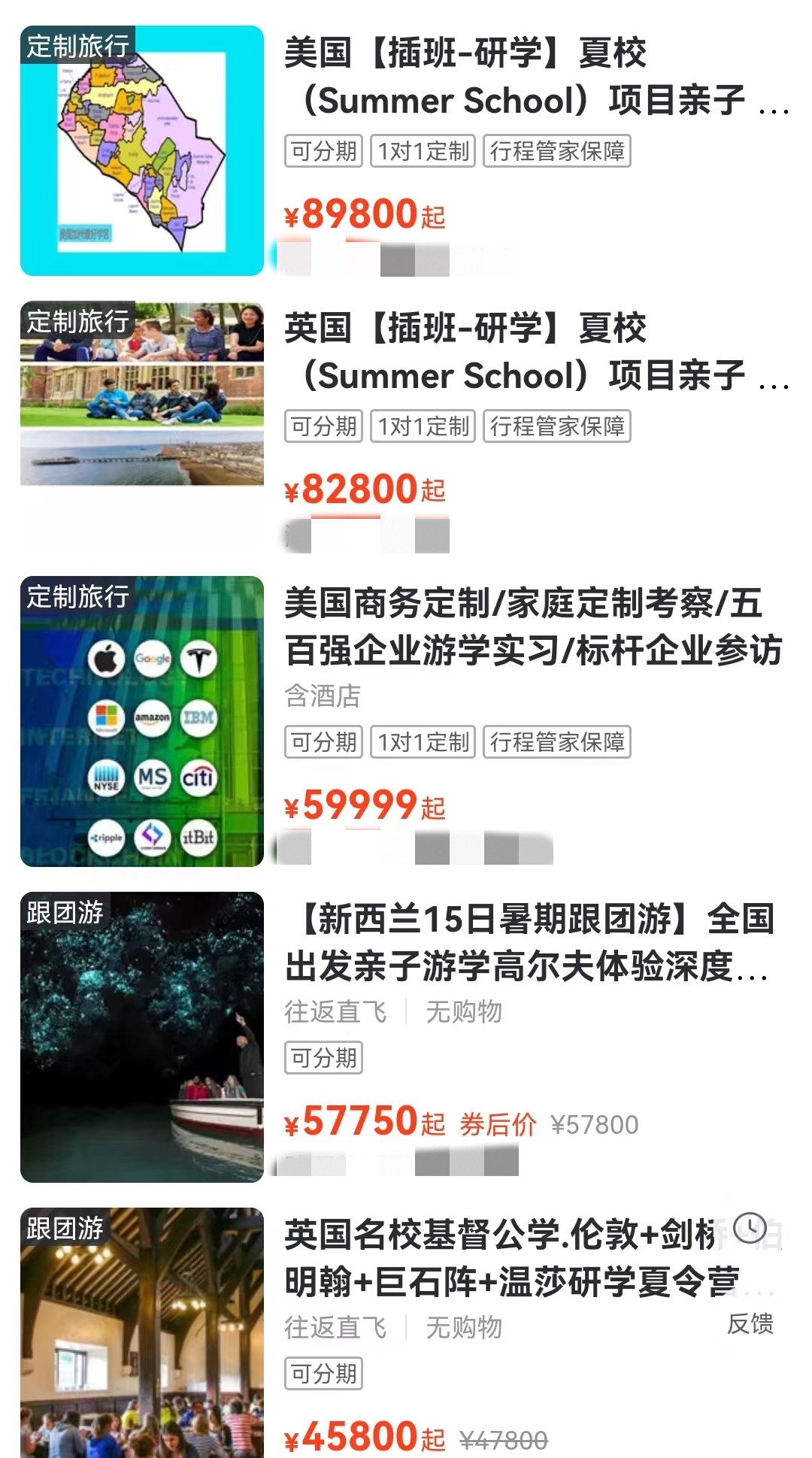 低至100多元的一日研學,高到近9萬(wan) 元的美國插班研學,打開某在線服務平台,各種研學項目應有盡有。