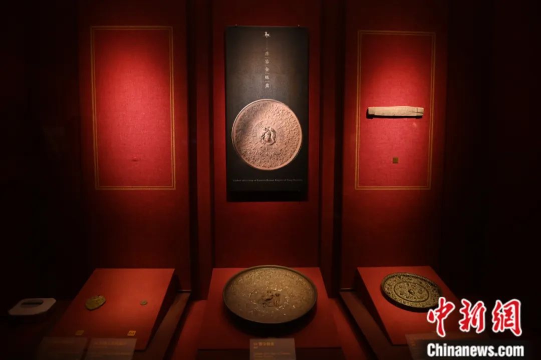 在甘肅省博物館展出的東(dong) 羅馬鎏金銀盤等文物。李亞(ya) 龍 攝