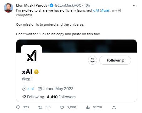 當天,馬斯克在社交媒體(ti) 平台推特上發文,宣布成立“xAI”,並稱“我們(men) 的任務是了解宇宙”。據報道,政府文件顯示,馬斯克於(yu) 3月在內(nei) 華達州注冊(ce) 了該公司。