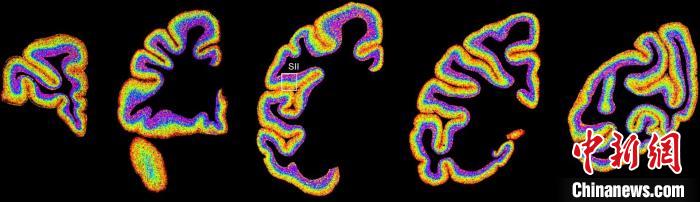 圖為(wei) 不同類型細胞在獼猴大腦上的分布切片。 中國科學院腦科學與(yu) 智能技術卓越創新中心 供圖