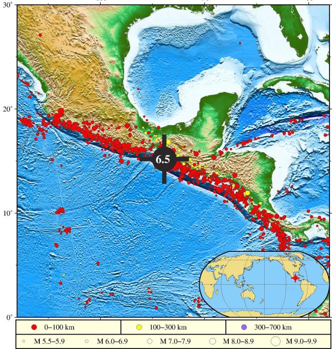中新網7月14日電 據中國自然資源部海嘯預警中心消息,2023年07月14日17時29分(北京時間),墨西哥恰帕斯州沿岸近海海域(15.18°N,93.86°W)發生6.5級地震,震源深度為(wei) 15千米。