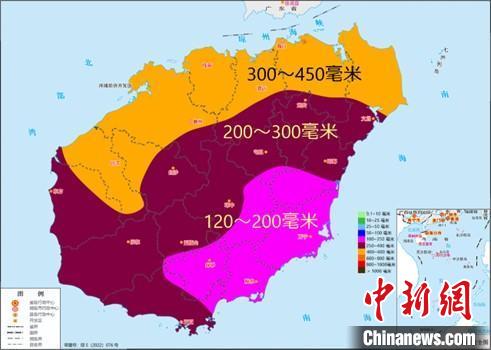 海南島2023年7月16日20時~19日08時過程累積雨量預報圖。 海南省氣象台製圖