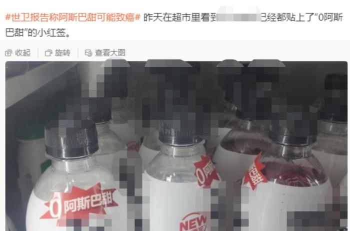 還有網友稱,在超市裏看到有飲料已貼上“0阿斯巴甜”的標簽。相關(guan) 飲料品牌方回應中新財經稱,標簽可能是經銷商自行貼上,品牌方本身未對瓶身包裝做出改動。