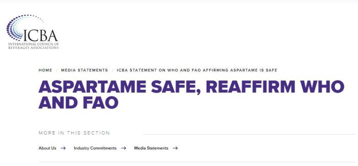 同一天,國際飲料協會(hui) 委員會(hui) (ICBA)發布文章稱,目前含阿斯巴甜的食品和飲料是安全的。ICBA還強調,IARC不是食品安全機構,它現在正式承認,阿斯巴甜造成的危害並不比蘆薈和其他數百種物質的危害大,這些物質根據IARC描述都屬於(yu) 證據“有限”和“不完全充分”的分類。