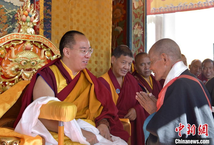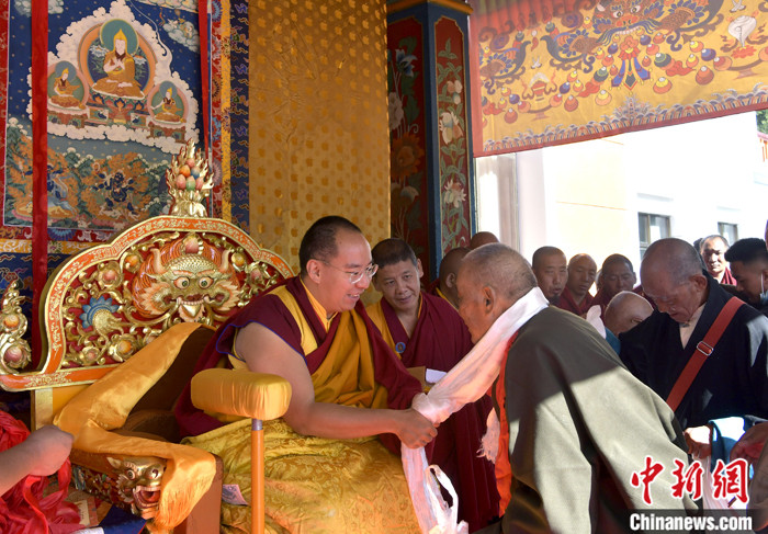 7月17日,班禪在雪林多吉頗章接受信眾(zhong) 朝拜。 中新社記者 李林 攝