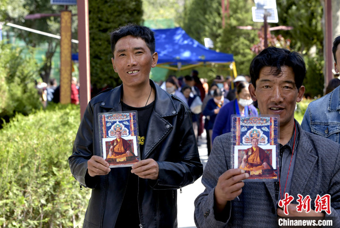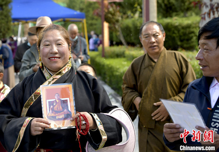 7月17日,信眾(zhong) 展示班禪法相照片。 中新社記者 李林 攝