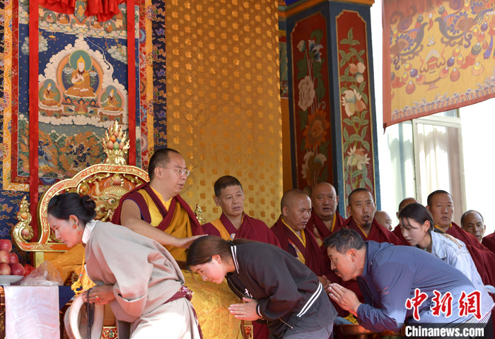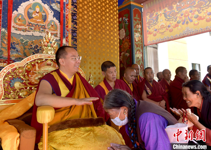 7月17日,班禪在雪林多吉頗章為(wei) 信眾(zhong) 摸頂賜福。 中新社記者 李林 攝