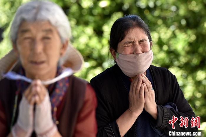 7月17日,信眾(zhong) 被班禪摸頂賜福後,激動不已、流下眼淚。 中新社記者 李林 攝