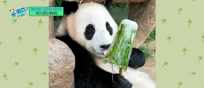 “福寶”吃“竹子冰淇淋”。(圖片來源:韓國tvN電視台)
