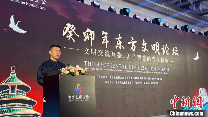 2023年7月23日,中國北京,孟子公益基金會(hui) 理事長孟亮在第四屆東(dong) 方文明論壇上致辭。 中新社記者 鄧力垚 攝