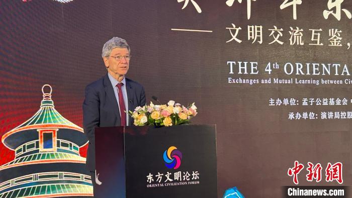 2023年7月23日,哈佛大學國際研究中心主任、哥倫(lun) 比亞(ya) 大學經濟學教授傑弗裏·薩克斯在第四屆東(dong) 方文明論壇上作主題演講。 中新社記者 鄧力垚 攝