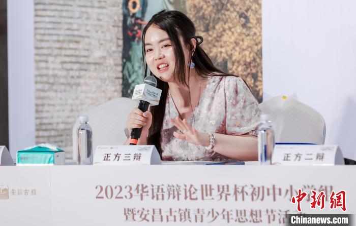 中新網紹興(xing) 7月24日電(項菁)辯以明思,論以博學。7月22日至26日,2023華語辯論世界杯初中小學組暨安昌古鎮青少年思想節活動在浙江省紹興(xing) 市柯橋區安昌古鎮舉(ju) 行,辯論板塊分為(wei) 團體(ti) 賽與(yu) 個(ge) 人賽,來自世界各地64支隊伍、64名個(ge) 人選手圍繞“亞(ya) 運”“文化”等話題展開辯論,角逐“最強辯手”。