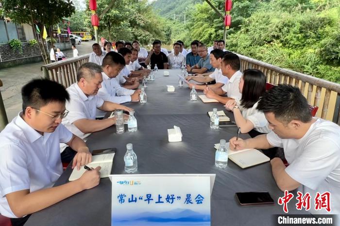 7月23日,“早上好”晨會(hui) 在浙江省衢州市常山縣田蓬村召開。中新社記者董易鑫攝