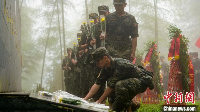 官兵徒步行軍(jun) 至武夷山市洋莊鄉(xiang) 小漿村張山頭無名紅軍(jun) 烈士墓群,開展“追尋紅色印記、賡續紅色血脈”參觀見學活動。中新社記者 張麗(li) 君 攝