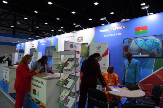 這是7月27日在俄羅斯聖彼得堡拍攝的俄非峰會(hui) 非洲國家展台。新華社記者安曉萌攝