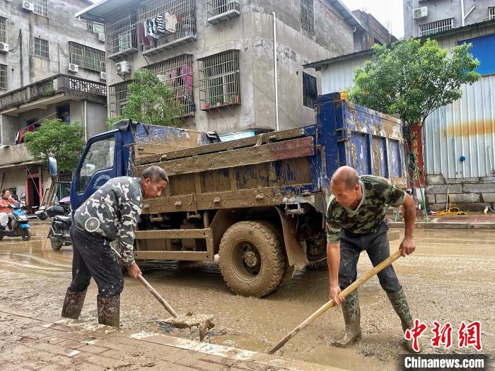 一天前,這裏還是深及腰部的積水。正拿著衝(chong) 水槍清掃街道淤泥的蘭(lan) 田村委會(hui) 副主任吳廣傅告訴中新網記者,積水於(yu) 今天(30日)淩晨一點多退去,6點半開始組織工人清理街道垃圾,之後衝(chong) 刷殘留的淤泥,明天還會(hui) 組織灑水車進行清洗,並開展出水口清理工作。