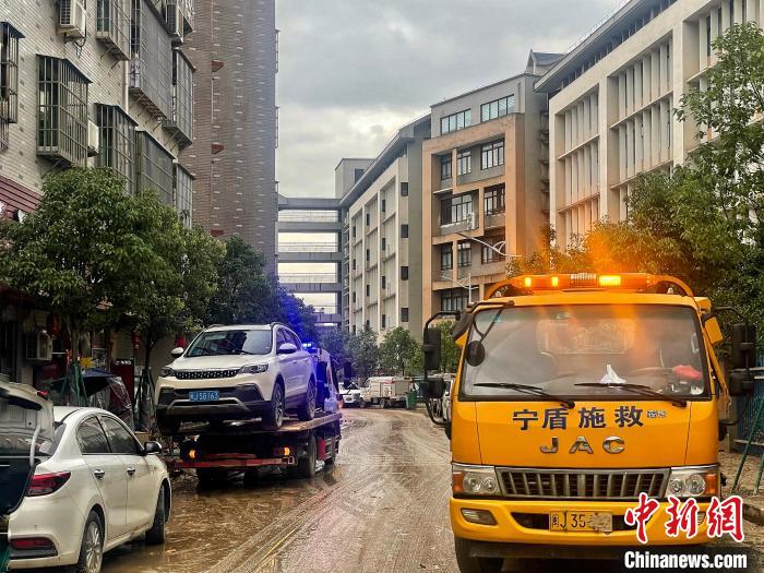 沿著中心街道往裏走,越往裏,積水退去後的殘留淤泥越多。街道兩(liang) 側(ce) ,不時可看見堆放著不少被積水浸泡過後、無法使用的家具、生活用品以及貨物等,救援車將一部部受損車輛拖離現場。