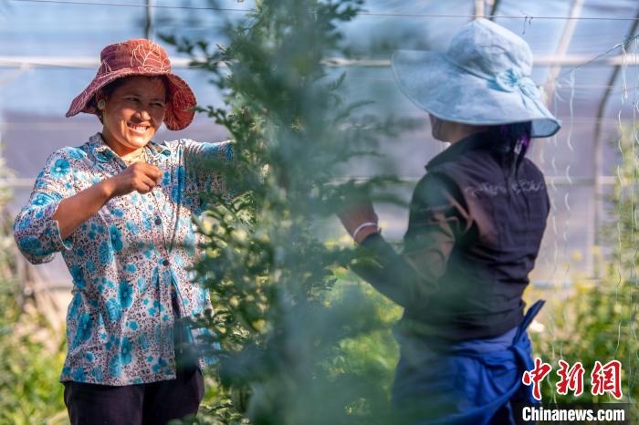 資料圖為(wei) 西藏白朗縣農(nong) 牧民在大棚內(nei) 打理西瓜苗。江飛波 攝