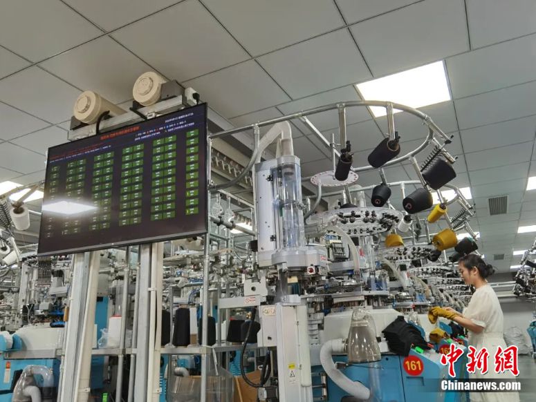 以縫頭為(wei) 例,在一體(ti) 化襪機之前,傳(chuan) 統的手工縫頭需要人工操作,效率很低,更新為(wei) 襪機後,成本降低了至少一半。而智能係統端,機器的效率則被更加量化地體(ti) 現在大屏幕上,一目了然,哪台襪機出現問題,車間數據顯示屏就能看到,避免生產(chan) 出次品襪子造成浪費。