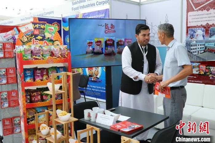 當地時間8月3日,哈薩克斯坦阿斯塔納,阿富汗商品展當日啟幕。圖為(wei) 阿富汗食品展商與(yu) 哈顧客洽談。 中新網記者 張碩 攝