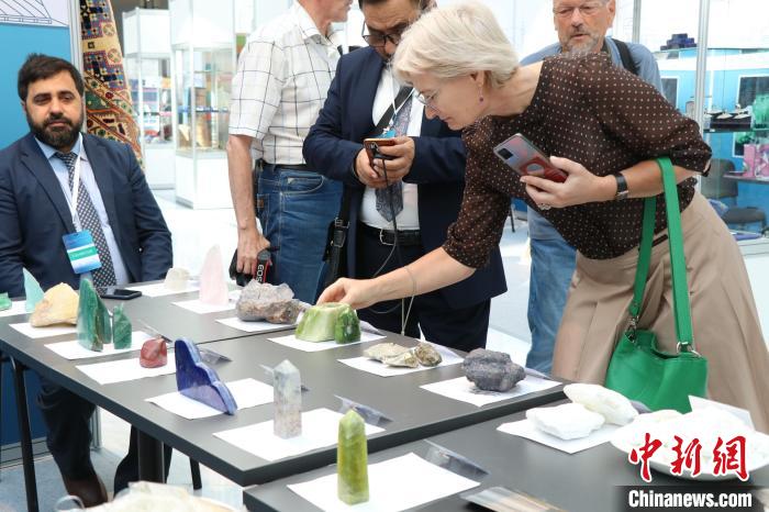 當地時間8月3日,哈薩克斯坦阿斯塔納,阿富汗商品展當日啟幕。圖為(wei) 阿富汗珠寶商展示產(chan) 品。 中新網記者 張碩 攝