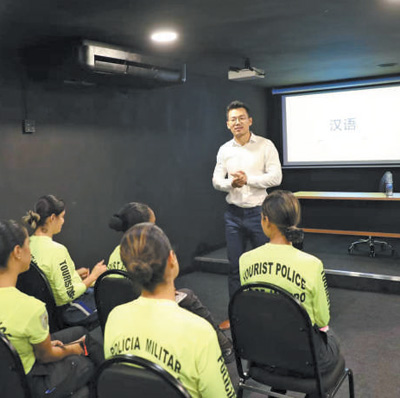 為(wei) 更好地保障中國遊客安全,裏約旅遊警察局和中國駐裏約總領事館合作推出的裏約旅遊警察中文培訓班日前正式開班。該培訓班分為(wei) 10個(ge) 課時,由裏約天主教大學孔子學院的教師授課。當地警員丹妮爾·克雷斯說,中國遊客將為(wei) 推動裏約經濟發展發揮重要作用,“我願與(yu) 同事一起為(wei) 保障遊客安全、促進巴中人民友好往來貢獻力量。”