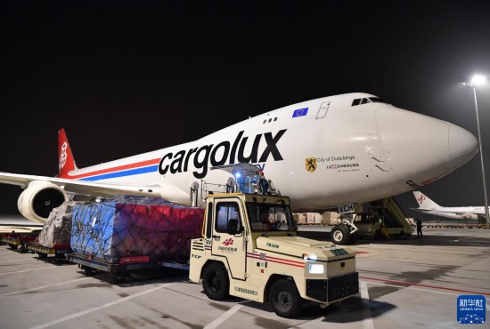 疫情期間,鄭州-盧森堡航線不但不停飛、不斷航,還增加了航班,為(wei) 中歐間特殊物資運輸提供支持。在此期間,印有“友誼無國界、天涯若比鄰”寄語的50萬(wan) 隻醫用外科口罩和4500件醫用防護服等防疫物資從(cong) 鄭州搭載全貨機飛抵盧森堡。
