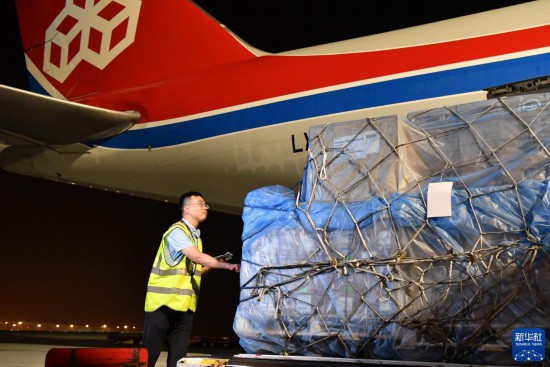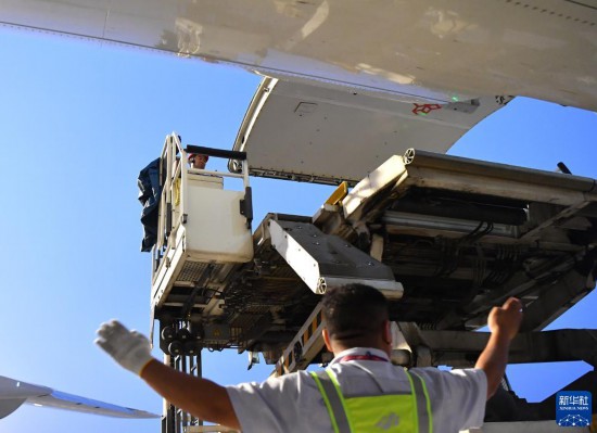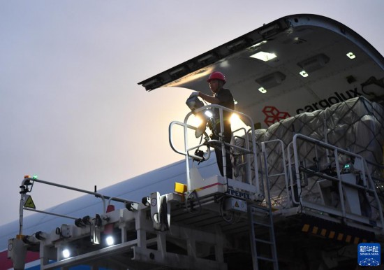 8月1日,工作人員在中國鄭州新鄭國際機場為(wei) 一架盧森堡貨航貨機裝貨。新華社記者 李嘉南 攝