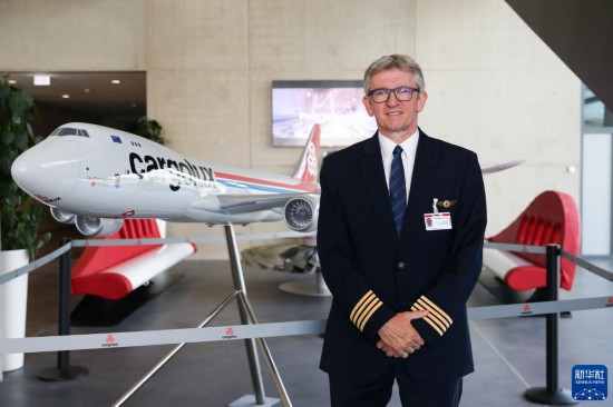 8月1日,在盧森堡貨航總部,盧森堡貨航飛行運營執行副總裁克洛德·澤倫(lun) 站在貨機模型前。新華社記者 鄭煥鬆 攝