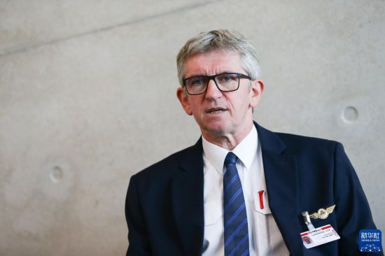 8月1日,在盧森堡貨航總部,盧森堡貨航飛行運營執行副總裁克洛德·澤倫(lun) 接受記者采訪。新華社記者 鄭煥鬆 攝