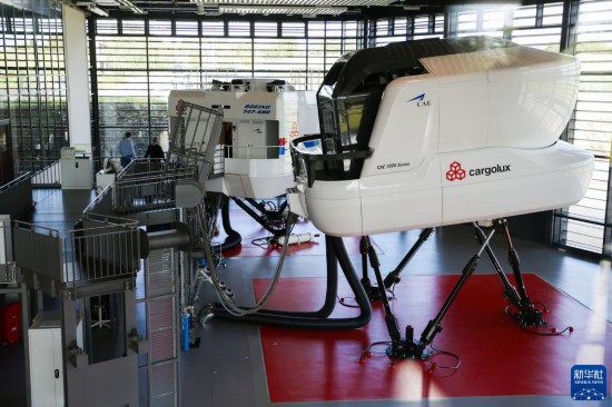 8月1日,工作人員在盧森堡貨航總部的飛行模擬器區域工作。新華社記者 鄭煥鬆 攝