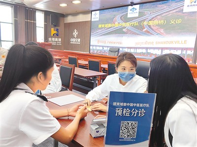 金港高速是柬埔寨第一條高速公路,是中柬共建“一帶一路”重點項目,柬埔寨本地員工占比達到88%。這裏高溫高濕的工作環境,導致頸肩腰腿痛疾病及胃腸病在員工中高發。義(yi) 診現場,中醫醫師用心傾(qing) 聽每個(ge) 員工的症狀和困擾,望聞問切,耐心診察,辨證施治,製定個(ge) 性化的治療方案。
