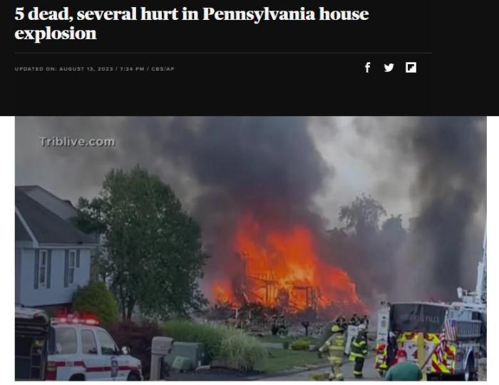 中新網8月14日電 據外媒報道,當地時間12日,美國賓夕法尼亞(ya) 州匹茲(zi) 堡附近城鎮普拉姆發生房屋爆炸。警方表示,這起事故已造成5人死亡、3人受傷(shang) ,多座建築物受損。