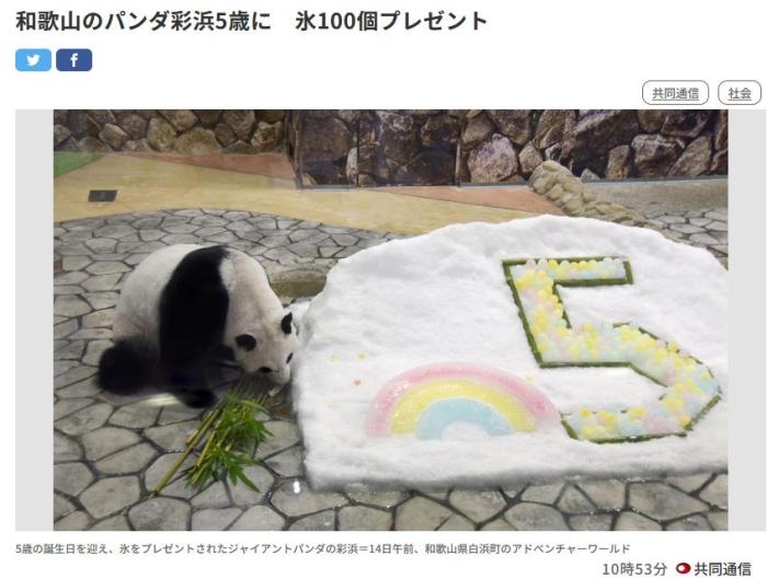 中新網8月14日電 據日本共同社報道,8月14日,日本和歌山縣白濱町“冒險大世界”動物園的雌性旅日大熊貓“彩濱”迎來五歲生日。