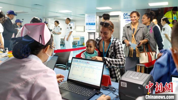 那天,6歲的基裏巴斯小男孩林傑克·拉紮茲(zi) (Linjkj Raazazi),成為(wei) 和平方舟執行“和諧使命-2023”任務以來的首位外籍兒(er) 科患者。經過檢查,拉紮茲(zi) 被確診為(wei) 上呼吸道感染引起的咽炎,醫生為(wei) 他開具了處方並詳細地給予了醫囑。
