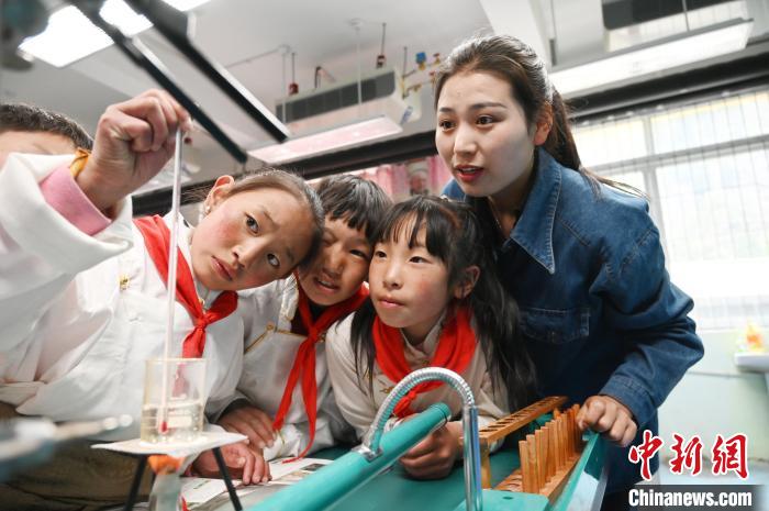 5月18日,四川阿壩州壤塘縣寄宿製學校學生在科學課做實驗。 中新社記者 安源 攝