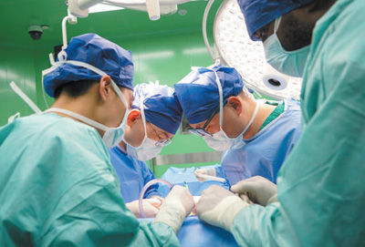8月10日,醫生在中國海軍(jun) “和平方舟”號醫院船上,為(wei) 瓦努阿圖患者進行手術。