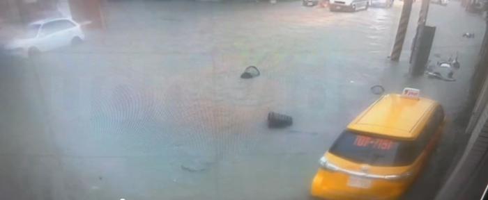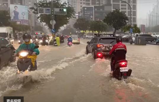 圖為(wei) 台灣高雄市路麵淹水。圖片來源:台灣“中時新聞網”視頻截圖