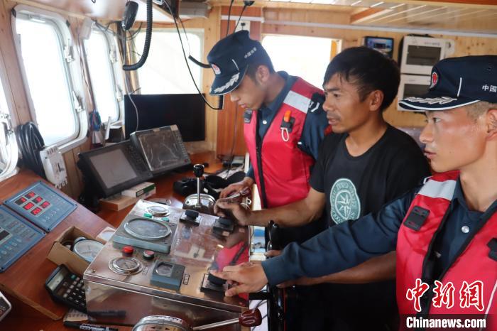 海警執法員對漁船導航儀(yi) 器設備進行檢查。蔡曉曄 攝
