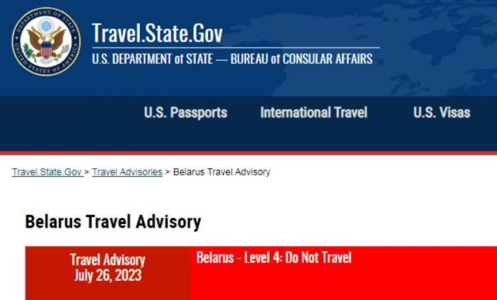 目前,美國務院對赴白俄羅斯的旅行建議為(wei) 最高級別4級,即 “請勿前往”。