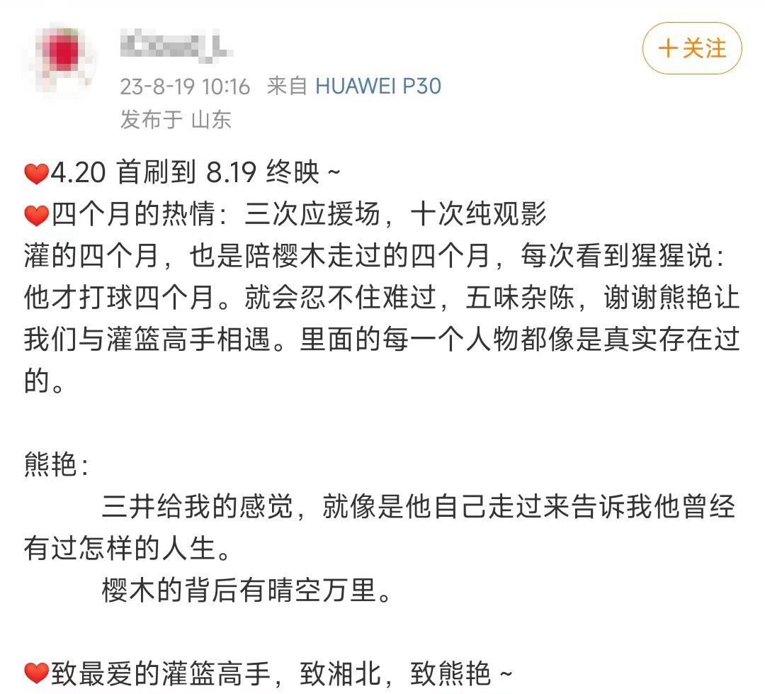 在《灌籃高手》電影終映日結束後,一位影迷留言道,“期待幾十年後重映,我們(men) 還是我們(men) 。”(完)
