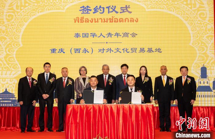 8月20日,48家在泰商協會(hui) 及知名企業(ye) 代表約200餘(yu) 人應邀參加了重慶文旅商貿推介展與(yu) 產(chan) 業(ye) 高峰論壇。圖為(wei) 簽約儀(yi) 式現場。馬興(xing) 海攝